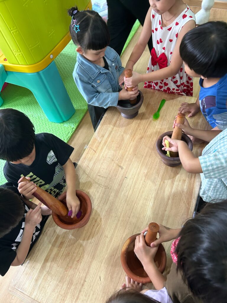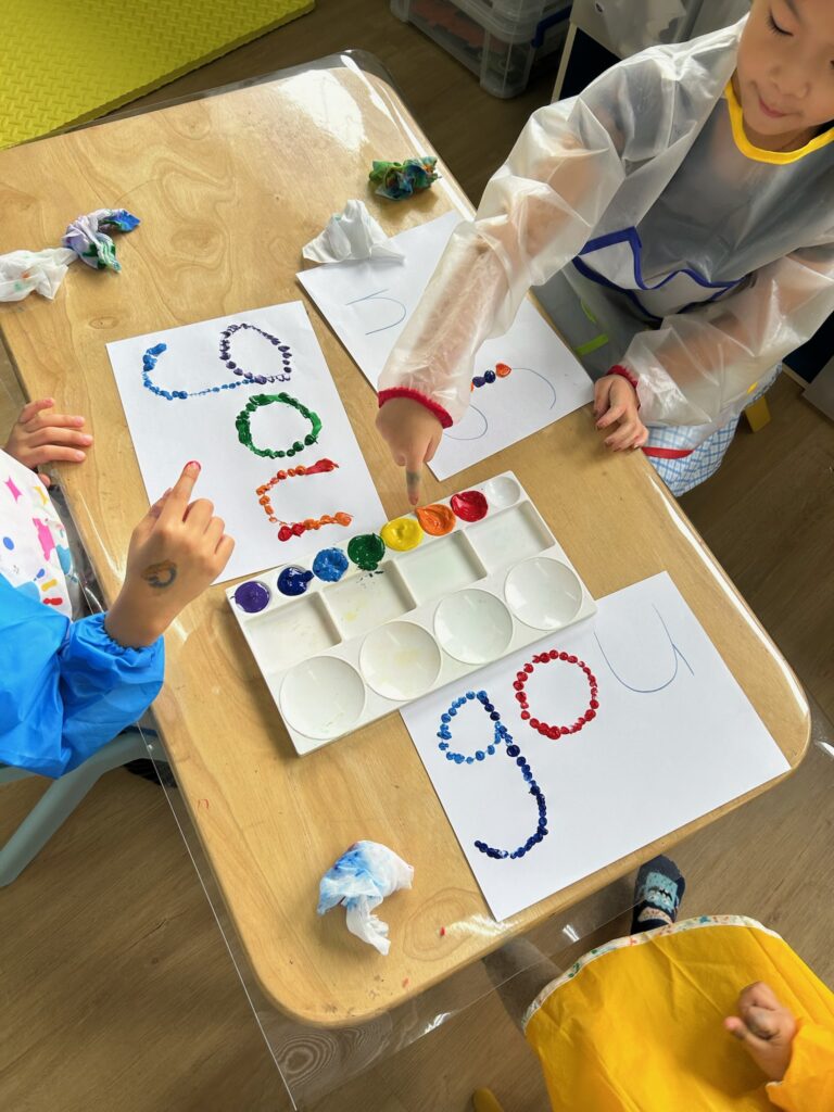 Dagene følger ofte samme rytme: litt undervisning, ofte med fokus på engelsk, ute-tid hvor barna får leke fritt og lunsj sammen. Senere på dagen har det ofte vært kreativt arbeid, som maling og tegning. Det har vært mye latter, maling på klær og små kunstverk som barna er stolte av å vise frem. Mot slutten av dagen er det nap time for de yngste, etter dette har jobben vår vært en time klipping, laminering og praktisk forberedning for lærerne.