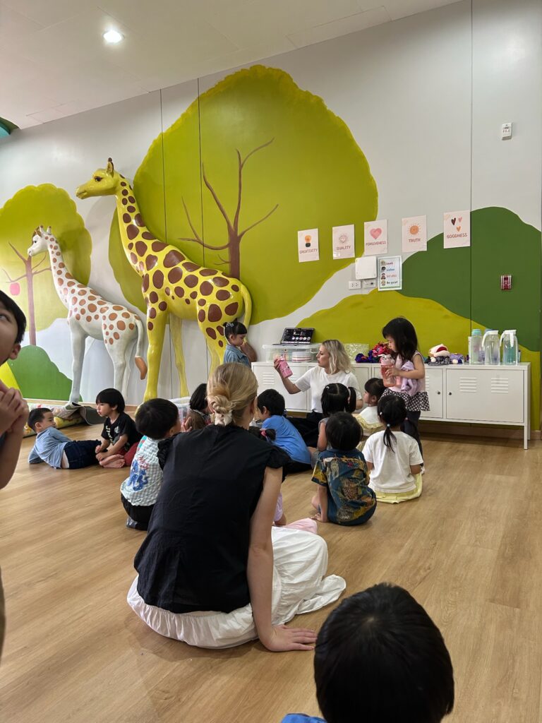 I Bangkok har jeg, sammen med Filippa, fått jobbe på KF-skolen. Det er en kristen privat skole for barn i alderen ca. 3 til 9 år. Skolen drives med et stort hjerte for barna, og det merkes godt både på lærerne og miljøet der. Mange av barna kommer fra ulike bakgrunner, men felles for dem alle er at skolen ønsker å gi dem trygghet, omsorg og verdier som bygger dem opp. Og selvsagt kristne verdier, det merkes i bønn før lunsj, ukens bibelvers og i diverse undervisning.
