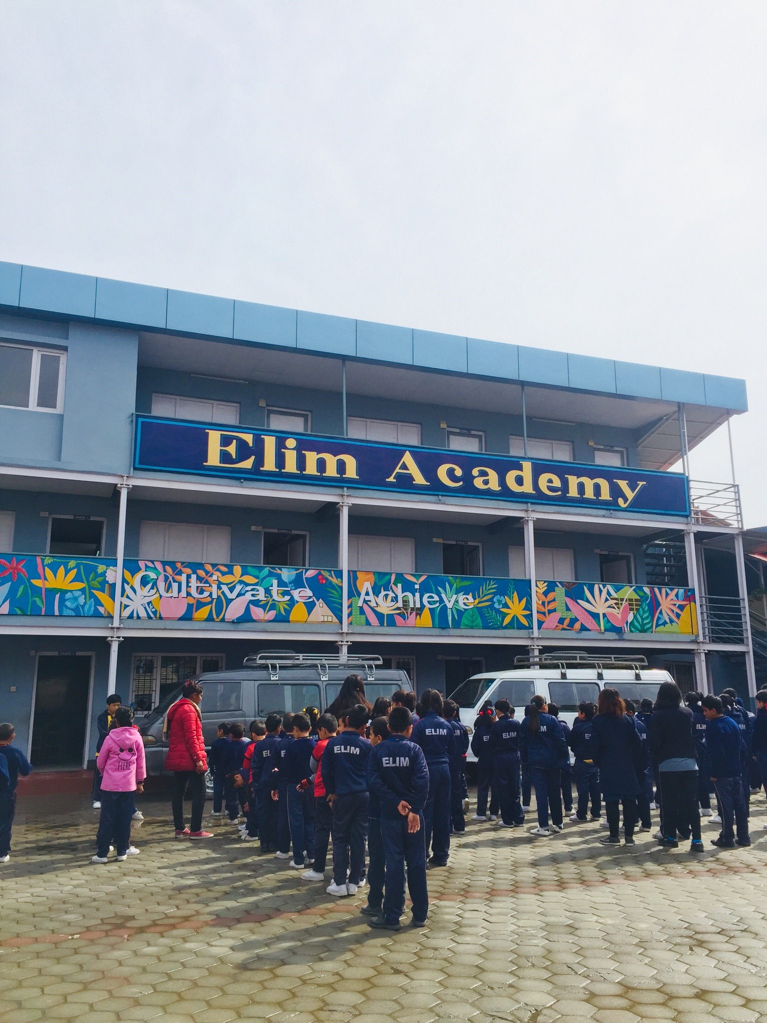 Teamet har to praksissteder. Elim Academy er skolen hvor Bendik og jeg skal jobbe under oppholdet. Den ligger en liten time med buss unna gjestehuset, noe som gir oss gratis sightseeing på samme tid. Inn i en bakgate, litt gjemt fra trafikkens støy og skitt finner vi et lyseblått skolebygg med en åpen skolegård. Rektor Rita kunne fortelle om skolen og dens visjon. Drømmen er at Elim Academy skal være en skole som kan være med på å endre noe av det negative menneskesynet vi finner i den nepalske kulturen fra grasrota. På denne skolen sitter barn fra både fattige og rike familier side om side, og gis de samme mulighetene. Rita kan fortelle at det å bygge en skole basert på kristne verdier i et hinduistisk samfunn ikke bare er lett. Likevel har de en tro på at gjennom Guds nåde og velsignelse er alt mulig.