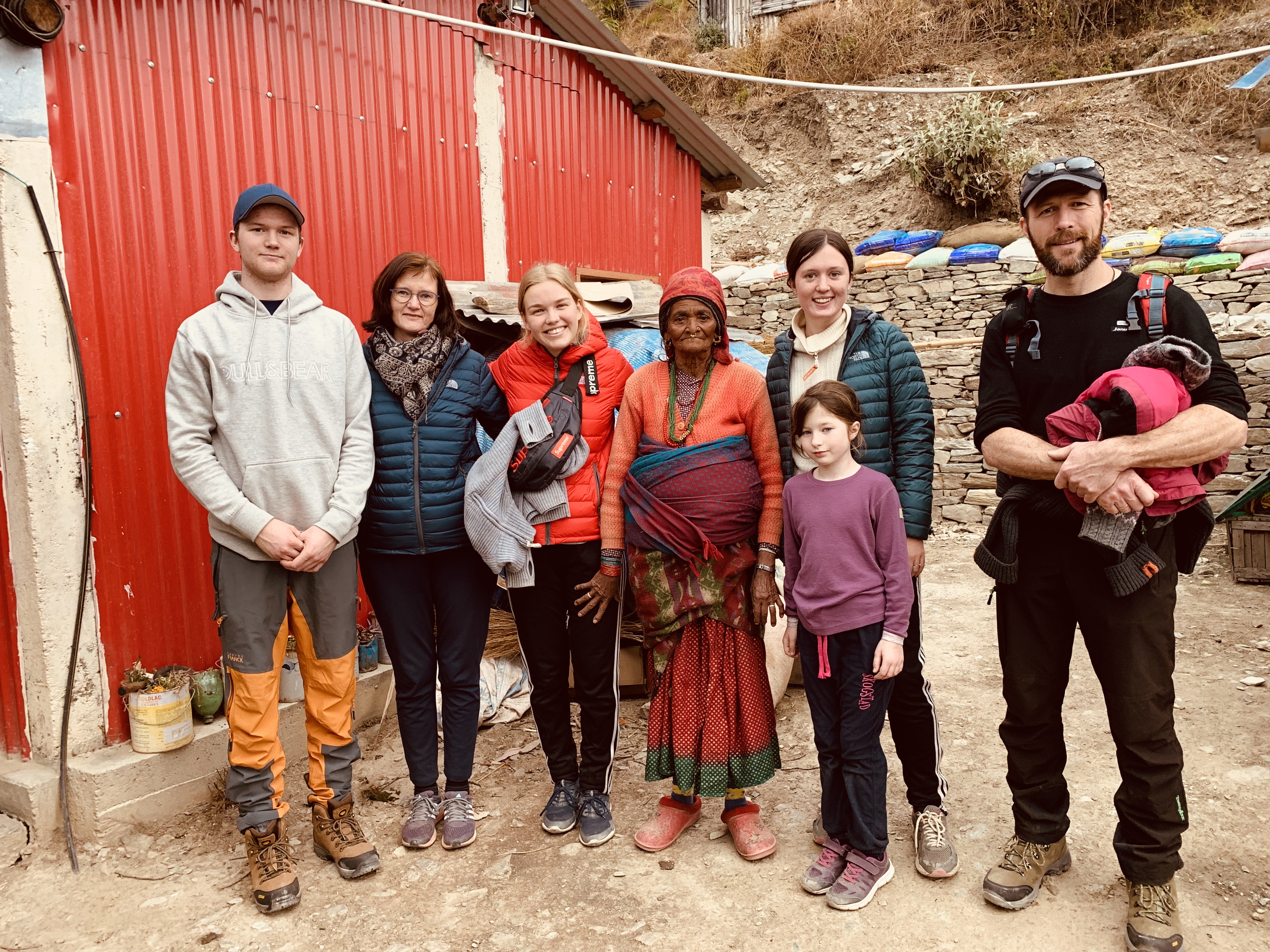 Frimodighet er et ord som vi har blitt veldig flinke til å praktisere, mens vi har levd her i Okhaldhunga. Her en dag gikk vi på en tur oppover i fjellet, bak huset vårt. Plutselig kom ei dame og vinket oss inn til huset sitt. Vi gjorde som vi fikk beskjed om og satt oss ned med disse søte menneskene som vi aldri hadde sett før. Bestemor i huset vugger et lite barn i en kurv, og passer på at hun sover godt. Bestemor snakker også ut om livet sitt og sparer ikke på noen detaljer. Dette var virkelig et kulturelt møte med menneskene her. Vi prøvde så godt vi kunne å forstå og svare på det hun spurte om. Siden vi ikke snakker flytende Nepali, var det litt utfordrende, men vi ville ikke vært foruten den opplevelsen!
