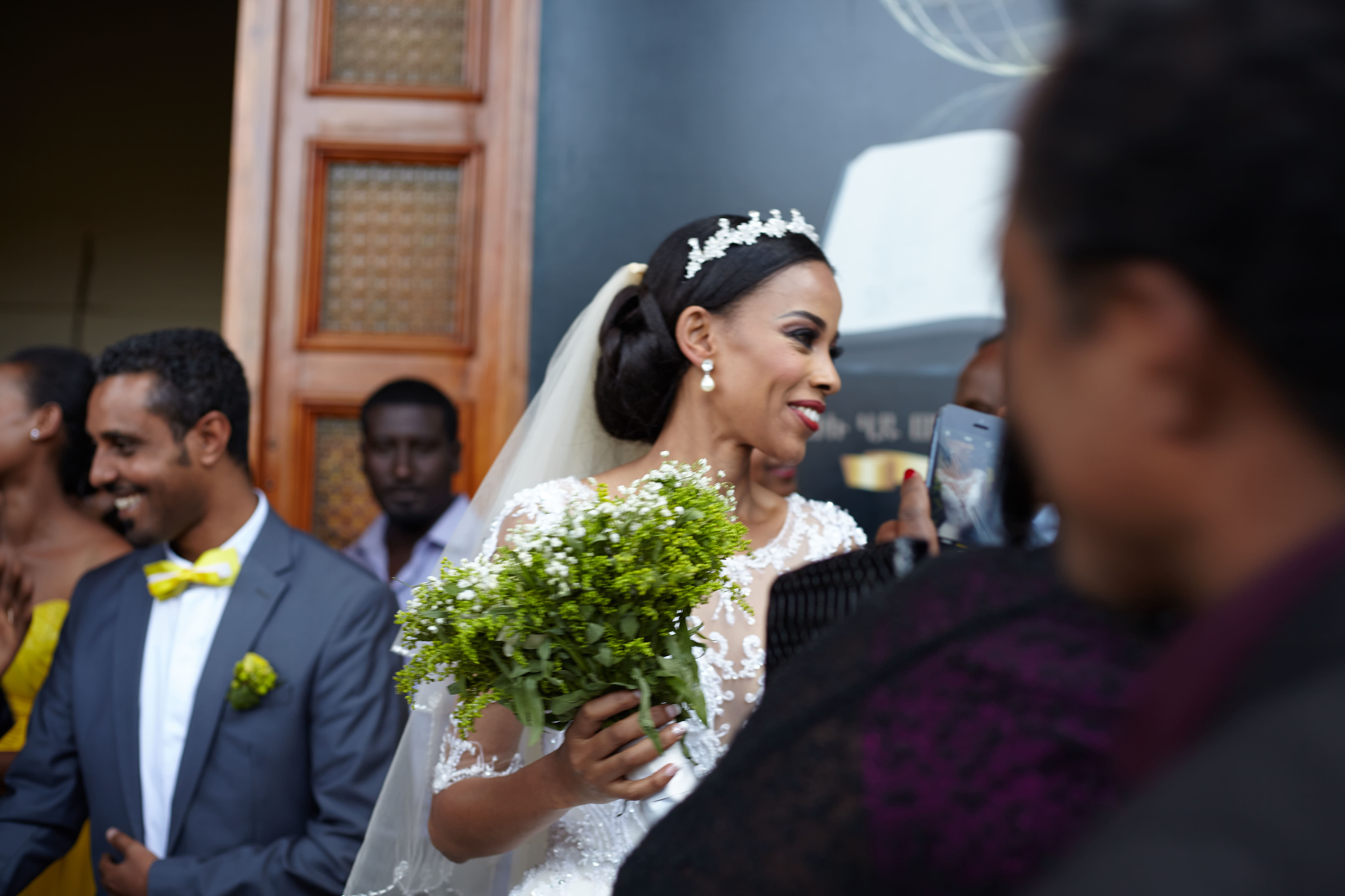 Bryllupseremonien skilte seg naturlig nok ut fra en standard, norsk vielse. Det første som møtte oss i kirken var et sterkt, blendende lys. Sånne hvite lys fotografer bruker. I Etiopia fungerer en bryllupseremoni som en slags photoshoot, og det var ikke bare lysene som skulle tilsi det. Det var ikke bare en fyr som skulle forevige minnene fra denne dagen, men hele fem fotografer, videografer og assistenter. Og det var på ingen måte av betydning å være diskré. Fotografene tok mye mer oppmerksomhet enn brudeparet selv.
